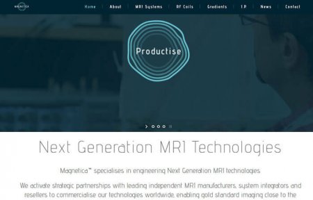 Magnetica не только хорошо выглядит, но и содержит всю нужную инфу о компании на главной. Там есть данные о структуре работы, МРТ-продуктах и возможностях по решению определенных проблем. Все написано простым языком.