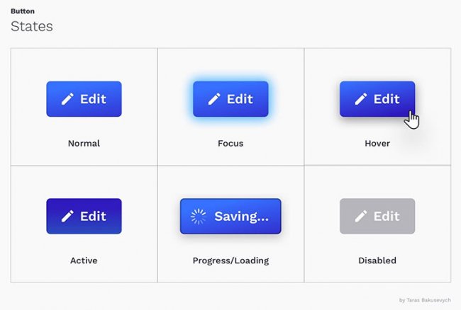 Правильное оформление элемента позволяет эффективно организовать взаимодействие с пользователями. Каждое из состояний кнопки должно иметь четкие характеристики, которые отличают его от других вариантов и окружающей среды, но при этом они не должны резко изменять внешний вид компонента или создавать много визуального шума.