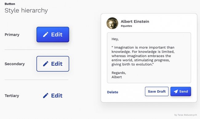 В основном специальные стили используются для того, чтобы выделить более важные действия. Создайте некую их иерархию, которая будет направлять пользователя туда, где будет множество вариантов для выбора. Обычно делают одну заметную кнопку (этот стиль часто называют «первостепенным»), а также несколько средних «второстепенных» и слабо акцентированных «третьестепенных» элементов. Что-то подобное вы могли видеть при работе с цветом в статье Как сделать цветовую палитру сайта.