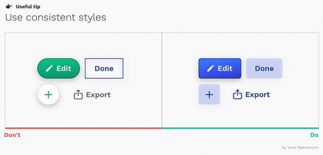 Последовательность в интерфейсе повышает скорость и точность при работе с ним, помогает избежать ошибок. Продумайте все таким образом, чтобы юзер понимал, что все под контролем, и что с помощью вашего продукта он сможет достичь своих целей. При создании первостепенного, второстепенного и третьестепенного стилей постарайтесь, чтобы их что-то объединяло – цвет, форма и т.п.