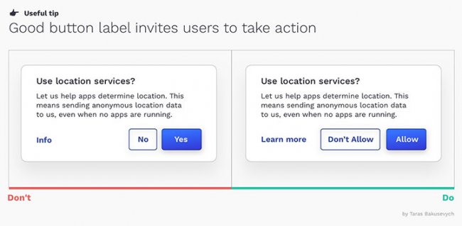 Лучше не выбирать ярлыки «Да»/«Нет» или слишком общие варианты, такие как «Подтвердить».