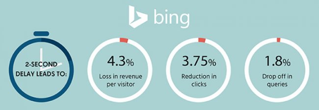 В одной статье на Medium встречается еще и такой пример конверсионных потерь при 2х-секундной задержке открытия страниц: минус 4.3% дохода с каждого посетителя и снижение кликов на 3.75%.