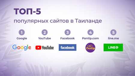 Наиболее посещаемыми сайтами в Таиланде являются Google, YouTube, Facebook затем идёт Pantip.com — место обсуждения политических и текущих событий; 6 место – местный мессенджер line.me; 7е – Twitter; 8-е – новостник sanook.com. Замыкают ТОП-10 – порно-сайты xvideos и xnxx.