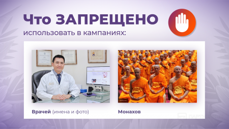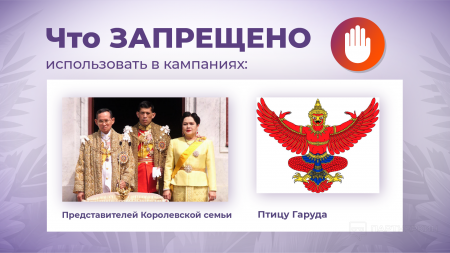 Запуская рекламу, стоит быть очень внимательным и избегать запрещенных изображений. Так на промо по Таиланду строго запрещено использовать: