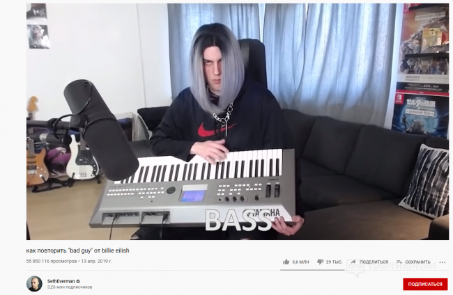 Имеет, вот самое прямое. Под своим видео он мог разместить ссылку на любую более или менее белую партнерку, сервис для музыки или приложение. Но он пошел другим путем и разместил под роликом ссылки на свои соцсети. А в современном мире количество подписчиков в соцсетях пропорционально вашему доходу. На данный момент у Сэта 658 тысяч подписчиков в Твиттере и 484 тысячи в Инстаграме. В YouTube цифры на порядок выше — 3,26 миллионов подписчиков. Каждое его видео собирает в среднем от 2 до 9 миллионов просмотров. Берем средний ценник за миллион просмотров и совершаем небольшие расчеты. 35 видео, около 5 миллионов просмотров на каждом, $200 за 1 миллион. Итог — $11 000 за самое популярное видео и $35 000 за остальные. И это все не считая сторонней рекламы.