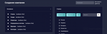 Далее таргетируем на выбранную аудиторию по гео, браузеру, операционной системе и другим критериям, а также при необходимости вводим блек и вайт листы.